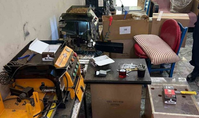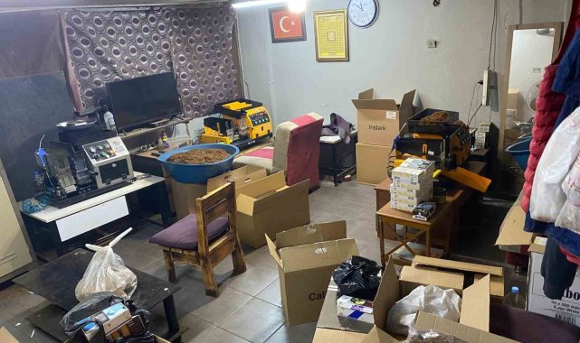 Yapılan operasyonda 80 bin adet tütün basılı sigara, 301 bin 400 adet makaron, 173 kilogram kıyılmış tütün, 47 bin 400 adet boş sigara kutusu, 4 bin 800 adet sigara filtresi, 10 adet elektronik sigara basma makinesi, 4 adet kompresör ve 2 adet hava makinesi ele geçirildi.