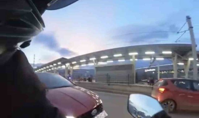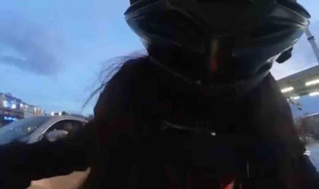 Olay anı ise motosiklet sürücüsünün kask kamerasına saniye saniye yansıdı.