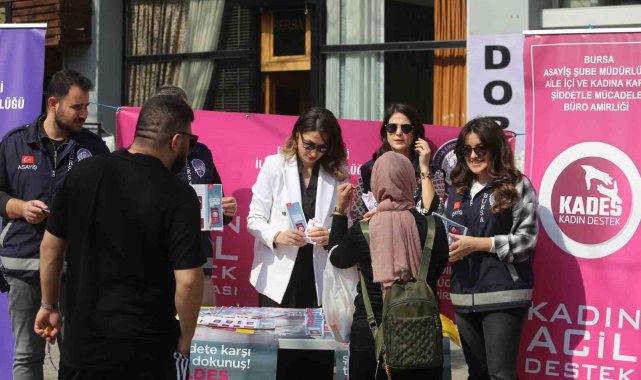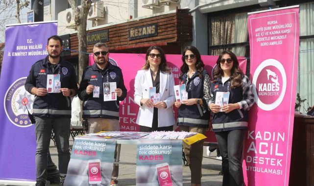 Bursa'da polis ekipleri kadına yönelik şiddetin önüne geçilmesi hedefiyle kent merkezinde stant kurdu. Stantlarda eğitim veren ekipler cadde cadde, sokak sokak dolaşarak vatandaşların telefonuna KADES uygulaması indirip suç oranlarının azalmasını hedefliyor.