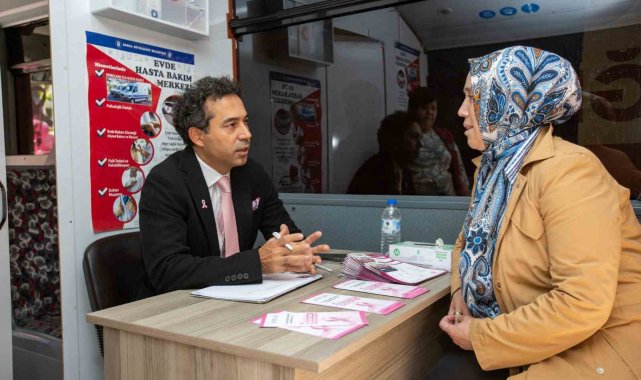 Bursa Büyükşehir Belediyesi, 1-31 Ekim Meme Kanseri Farkındalık Ayı'nda çeşitli etkinliklerle halk sağlığına dikkat çekmeye devam ediyor. Sağlık İşleri Dairesi Başkanlığı Halk Sağlığı ve Sağlıklı Yaşam Şube Müdürlüğü tarafından Orhangazi Parkı'nda düzenlenen programda, İstanbul Tıp Fakültesi'nden Genel Cerrahi ve Meme Cerrahisi Uzmanı Doç. Dr. Selman Emiroğlu tarafından Sağlık Otobüsü içerisinde kadınlara ücretsiz muayene yapıldı. Alanda ücretsiz şeker ve tansiyon ölçümleri de yapan Büyükşehir Belediyesi hekimleri, vatandaşlara erken teşhis konusunda bilgilendirme broşürleri dağıttı.