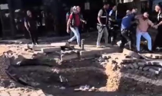 Bursa'da kafeterya yıkımında ortalık karıştı. Bir polis yaralı