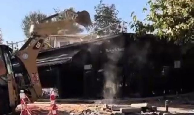 İş makinelerinin kepçeleri kaçak yapıyı yıktı. O anlar güvenlik kameraya anbean yansırken, olayla ilgili tahkikat sürüyor.