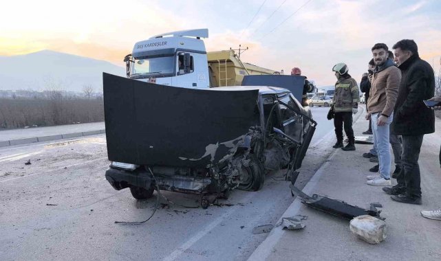 Bursa'da kamyon ile otomobil kafa kafaya çarpıştı: Araçta sıkışan sürücüyü vatandaşlar kurtardı