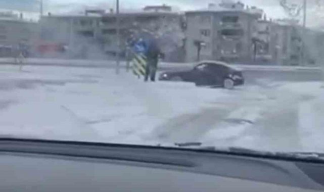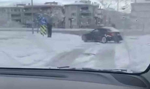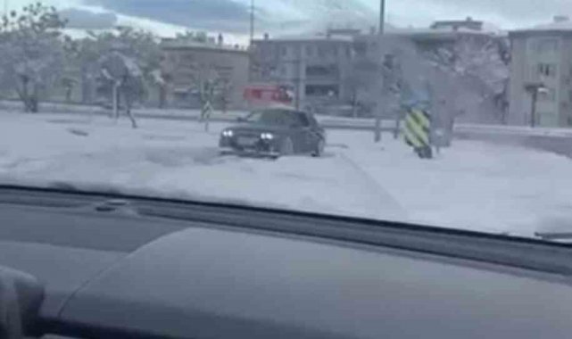 Kentte etkili olan kar yağışıyla birlikte kayganlaşan yollarda tehlikeli anlar yaşandı. Kar yağışını fırsat bilen bir sürücü, otomobiliyle kavşakta drift atarak trafik güvenliğini hiçe saydı. O anlar çevredeki bir vatandaş tarafından cep telefonu kamerasıyla kaydedildi.