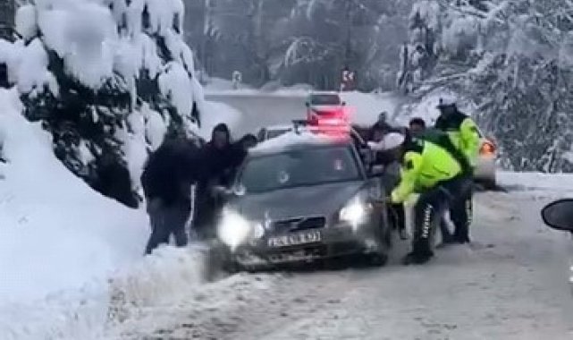 Bursa'da karlı yolda vatandaşlar mahsur kaldı
