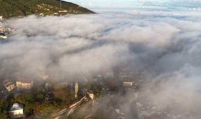 Bursa'nın bulutlar arasındaki manzarası nefes kesti.