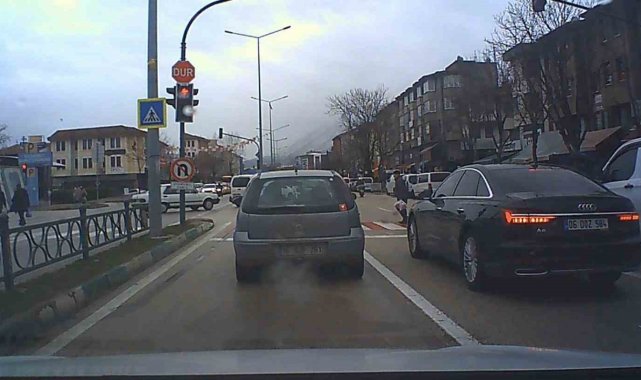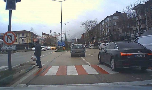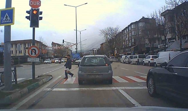 Bu sırada 16 BJP plakalı otomobil, sola dönüş yapacakmış gibi dönüş şeridine girdi. Ancak sola dönüşten vazgeçen sürücü şerit değiştirip yoluna devam etmek istedi. Manevra sırasında geçitteki yayanın canını hiçe sayan sürücü tehlike yaşattı. Muhtemel bir kazanın son anda önlendiği olay, trafik kurallarının ihlal edilmesinin doğurabileceği ciddi sonuçları bir kez daha gözler önüne serdi. O anlar da bir otomobilin araç kamerasına yansıdı.