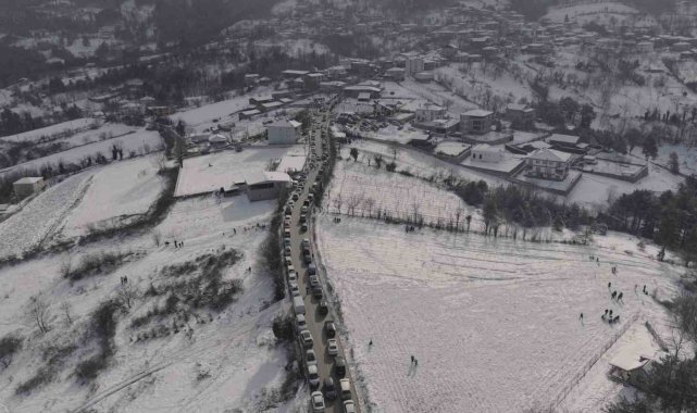 Bursa'da düzenlenen Kış Festivali'ne vatandaşlar yoğun katılım sağlarken, köy yollarının dar olması ve araç yoğunluğu nedeniyle trafik adeta felç oldu.