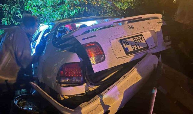 Bursa'da kontrolden çıkan otomobil bahçeye uçtu : 1 yaralı