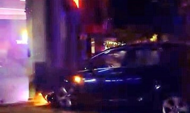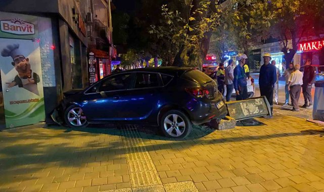 Bursa'da kontrolden çıkan otomobil önce elektrik panosuna ardından motosiklete çarptı