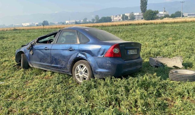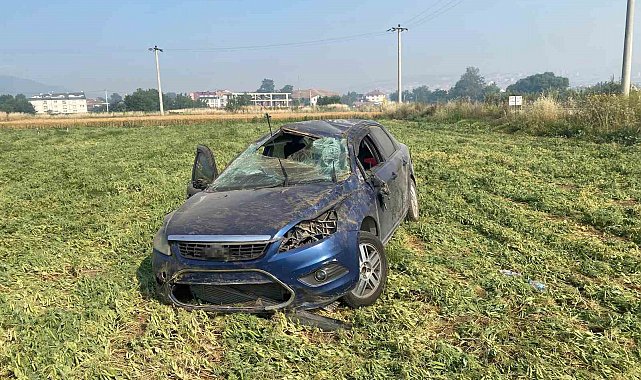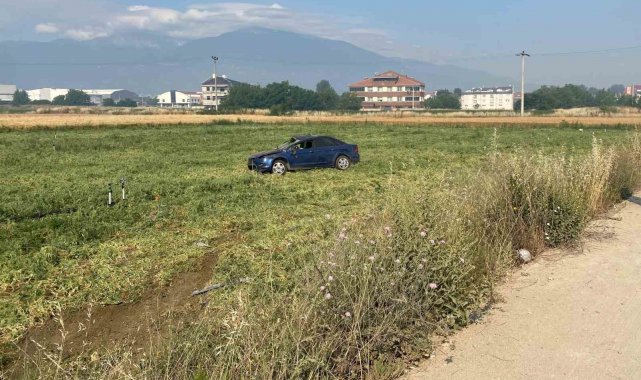 Bursa'da kontrolden çıkan otomobil tarlaya uçtu