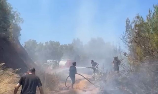 Bursa'nın Gemlik ilçesi Kurşunlu Mahallesi'nde dün öğle saatlerinde ormanlık alanda henüz belirlenemeyen bir nedenle yangın çıktı. Dumanları fark eden mahalle muhtarı, durumu hemen itfaiyeye bildirirken, köylülerle birlikte yangın bölgesine giderek ilk müdahaleyi yaptı.