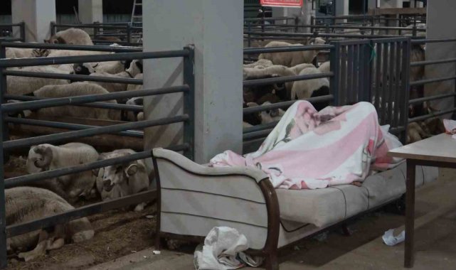 Bursa'da bayram telaşı başladı. Demirtaş'ta bulunan hayvan pazarına farklı illerden kurbanlık getiren satıcılar, gece müşteriler gidince hayvanlarla koyun koyuna yatıyor. Satıcılar, büyük emekle yetiştirdikleri hayvanlarının yanından bir an olsun ayrılmıyor. Bir yıl boyunca büyüttükleri hayvanları satmak için pazara gelen besiciler, hayvanların başından ayrılamadan gece gündüz nöbet tutuyor. Hayvanları için yaptıkları bölmelerde kurbanlıklarla birlikte uyuyan celepler, ahırlarda yemek yiyor ve dinleniyor. Ahırlarda battaniyeye sarılıp yatan satıcılar, piknik tüplerinde yemek ve çaylarını yaparak karınlarını doyuruyor. Hayvan pazarlarında seyyar helalar ve hayvan sahiplerinin banyo yapabilmesi için kapalı duşlar bulunuyor. Bazı çobanlar hırsızlıktan korktukları için koyunlarla beraber yattıklarını söyledi.