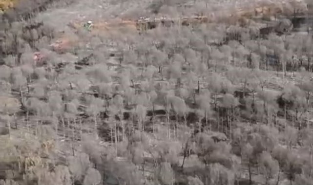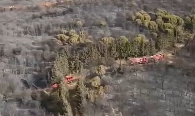 Bursa'da küle dönen ormanlık alan havadan görüntülendi