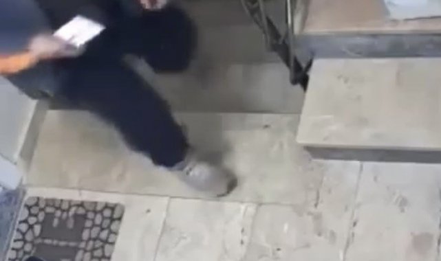 O anlar ise güvenlik kamerasına saniye saniye yansıdı. Kuryenin bu hassas davranışı çevrede takdir topladı.