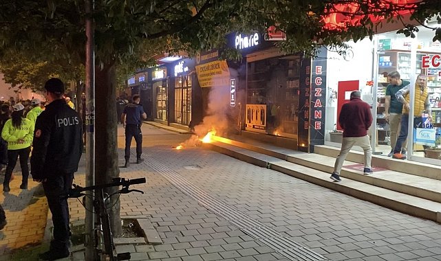 Olay, İnegöl ilçesinde meydana geldi. Galatasaray'ın şampiyon olması ile kutlamalar için sokağa çıkan taraftarlar, bir süre sonra Fenerbahçeliler Derneği'nin önüne geldi. Burada bir taraftar, yaktığı meşaleyi derneğe doğru fırlattı. Bunun üzerine polis ekipleri, taraftarı etkisiz hale getirdi. Yapılan üst aramasında üzerinden bıçak çıkan taraftar gözaltına alındı.