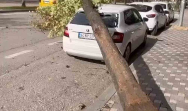 Bursa'da lodos: Otomobilin üzerine ağaç devrildi, o anlar kameraya yansıdı