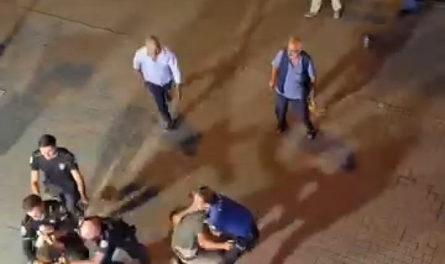 Bu sırada çocuklarının kavga ettiğini öğrenen baba Y.S. ekmek bıçağıyla olay yerine gelerek "Çocuklarımı kim darp etti?" diyerek esnafa saldırmaya çalıştı. Polis ekipleri Y.S.'yi etkisiz hale getirerek suç aletiyle birlikte gözaltına aldı.