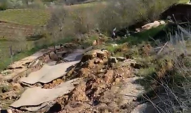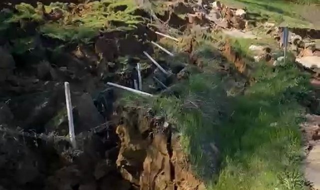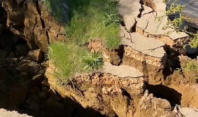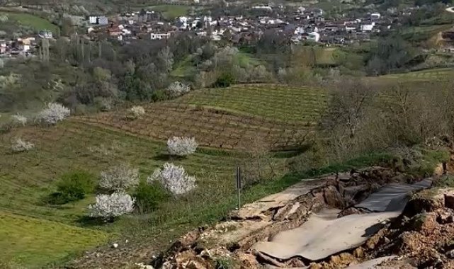 Bursa'da meydana gelen heyelan yolu parçalara ayırdı