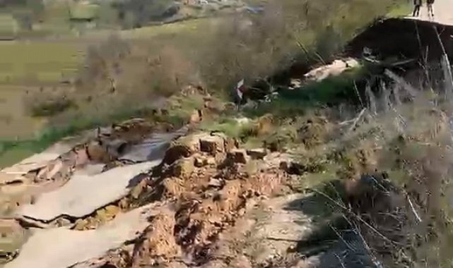 Bursa'nın İnegöl ilçesinde iki kırsal mahalleyi birbirine bağlayan yol, meydana gelen heyelan nedeniyle ulaşıma kapandı.