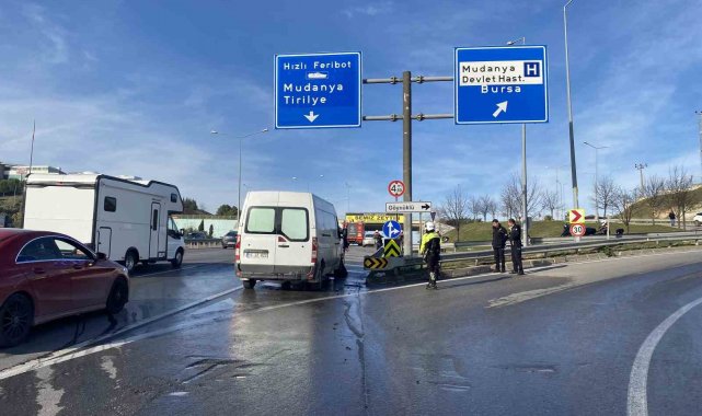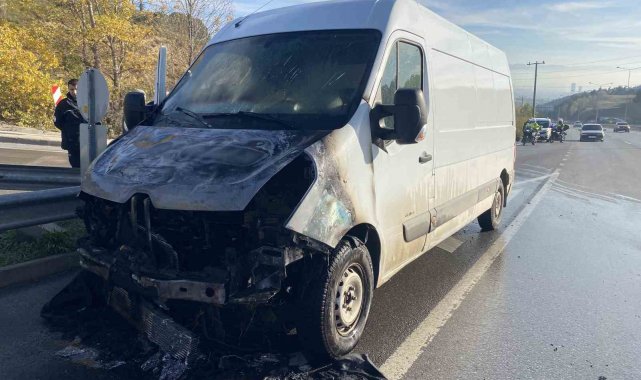 Bursa'nın Mudanya ilçesinde bir minibüs yük taşıdığı esnada motor kısmından alev aldı. Yanan minibüse yoldan geçen BUSKİ ekipleri müdahale etti.