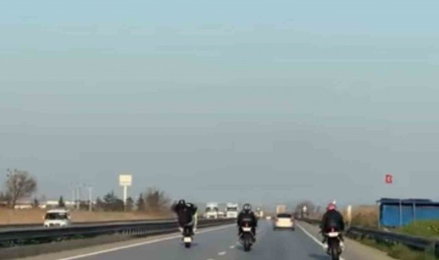 Bursa'nın Mustafakemalpaşa ilçesinde ana yol üzerinde seyir halinde olan iki motosiklet sürücüsü, yaptıkları tehlikeli hareketlerle hem kendi canlarını hem de trafikteki diğer sürücülerin güvenliğini tehlikeye attı.