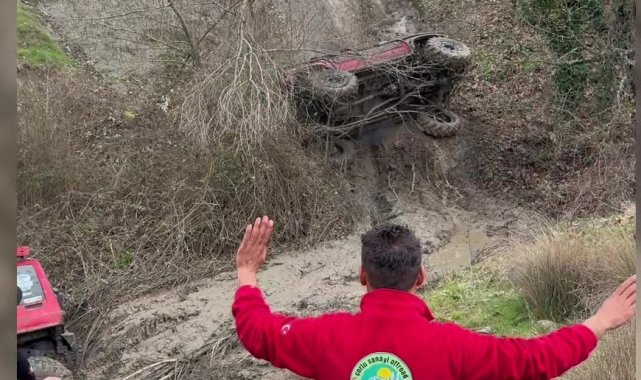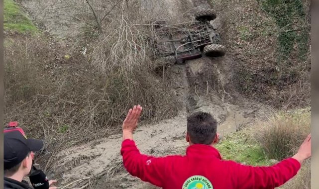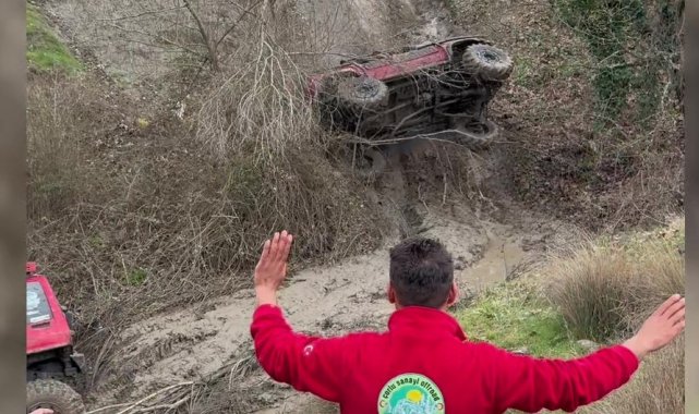 Bursa'da düzenlenen off-road etkinliği renkli görüntülere sahne olurken, parkurda takla atan araçtan sürücünün yara almadan kurtulması yürekleri ağza getirdi.