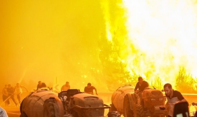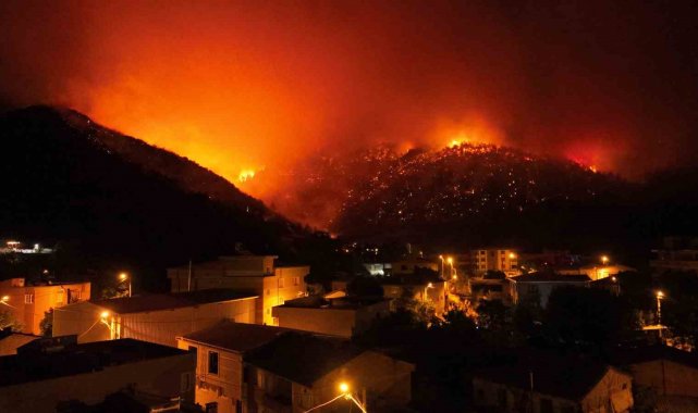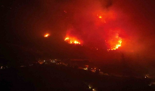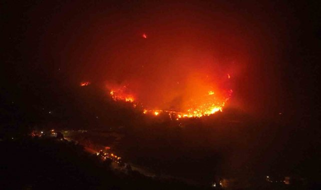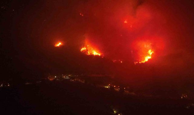 Yangının dron ile havadan kaydedilen görüntülerinde ise gecenin karanlığı adeta kızıla boyandı. Çam ağaçları alev alev yanarken, bazı noktalarda itfaiye ve orman ekipleri müdahalede bulundu. Rüzgarın zaman zaman hızını arttırması ekiplerin de işini zorlaştırdı. 3 köyde 1765 kişinin tahliye edildiği açıklandı.