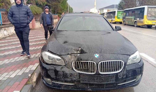 Kaza, saat 16.00 sıralarında Yunusemre Mahallesi Esenler Caddesi'nde meydana geldi. Yusuf G. (18) yönetimindeki 16 KM 378 plakalı otomobil, sürücüsünün kontrolünden çıkarak yol kenarında yolcu almak için duran Selçuk E. (41) idaresindeki 16 BSG 845 plakalı hafif ticari araca arkadan çarptı. Çarpmanın etkisiyle savrulan hafif ticari araç, araca binmek üzere olan yaya Dursun G.'ye (70) çarptı. Kaza sonucu hafif ticari araçtaki yolcu Ayşe E. (38) ile yaya yaralandı. Yaralılar kaza yerine sevk edilen ambulansla İnegöl Devlet Hastanesine kaldırıldılar. Kaza anı bir sitenin güvenlik kamerasına yansıdı.