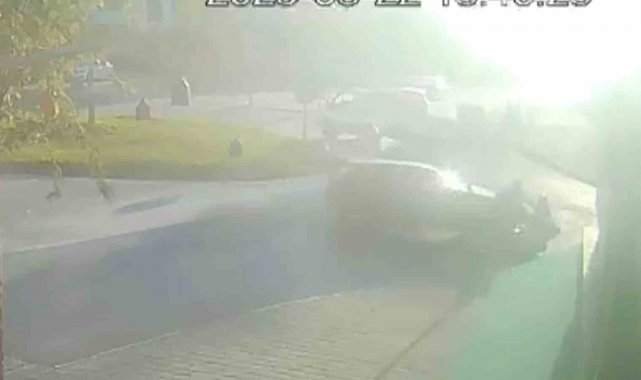 Bursa'nın İnegöl ilçesinde meydana gelen kazada otomobil ile çarpışan motosikletin sürücüsü yaralandı. Kaza anı bir iş yerinin güvenlik kamerasına saniye saniye yansıdı.