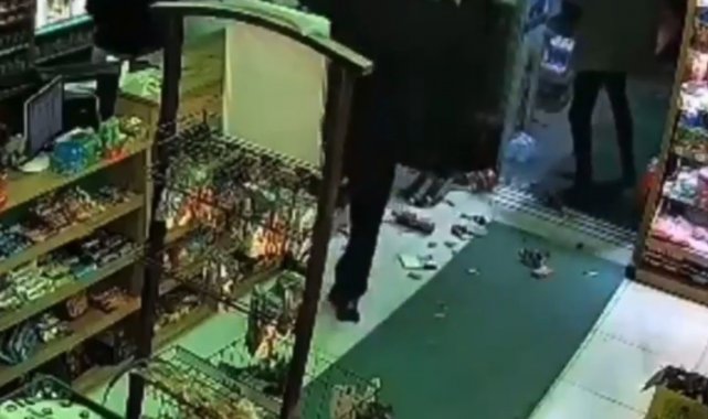 Bursa'da bir markette para üstü nedeniyle çıktığı iddia edilen tartışma kısa sürede kavgaya dönüştü. Öfkelenen müşteri, eline geçirdiği ürünleri iş yeri sahibine fırlatarak dükkana zarar verdi. Yaşanan arbede anbean güvenlik kamerasına yansıdı.