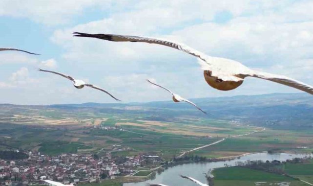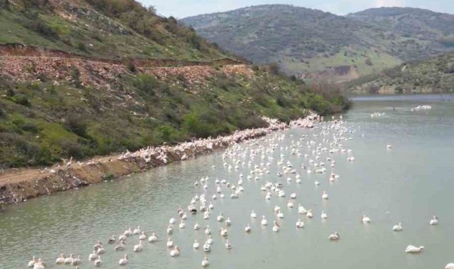 Bursa'nın İnegöl ilçesindeki Boğazköy Barajı, bahar aylarının gelişiyle birlikte göç eden pelikanların uğrak noktası haline geldi.