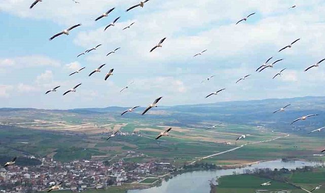 İnegöl Belediyesi Basın Halkla ilişkiler ekipleri, pelikan sürüsünü drone'la görüntüledi.