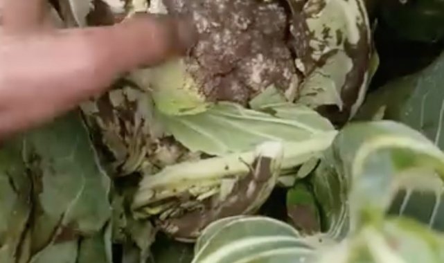 Karacabeyli üretici çamura bulanan karnabaharın görüntülerini paylaştı.