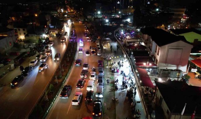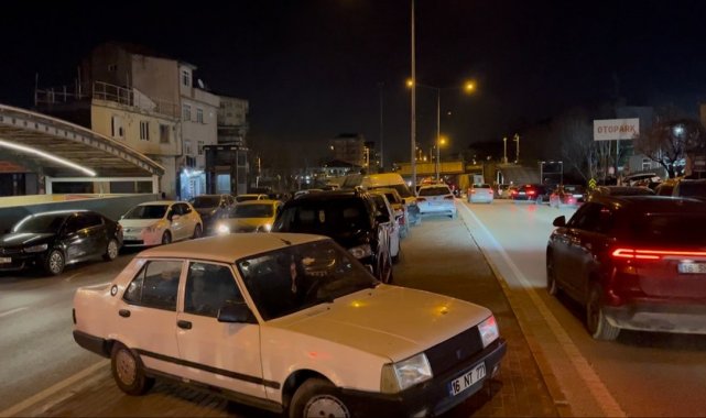 Bursa'da tarihi Abdal Meydanı'nda sahur geleneği devam ediyor. Tahanlı pide ve simit almak isteyen vatandaşlar metrelerce kuyruk oluştururken, araç yoğunluğu nedeniyle bölgede trafik adeta kilitlendi. O anlar anbean kameraya yansıdı