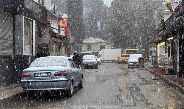 Bursa'da sabah saatlerinde etkili olan yoğun kar yağışı şehre beyaz gelinlik giydirdi. Meteoroloji'nin uyarılarının ardından beklenen soğuk hava etkisini gösterdi. Sabah saatlerinden itibaren kent merkezinde başlayan yağış, herkese sürpriz yaşattı. 8.kilometreden itibaren Uludağ'a gidecek araçların zincirsiz çıkışına izin verilmiyor.