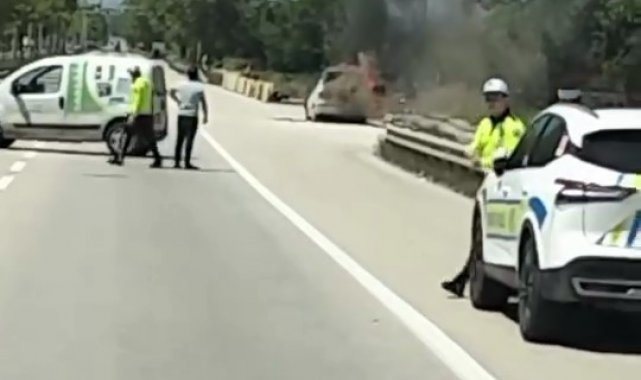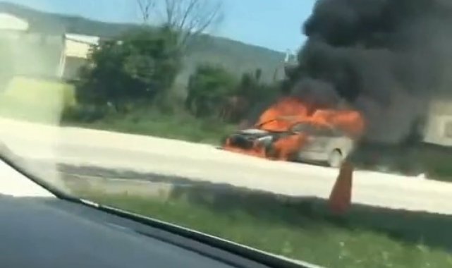 Bursa'da seyir halindeki otomobil alev alev yandı