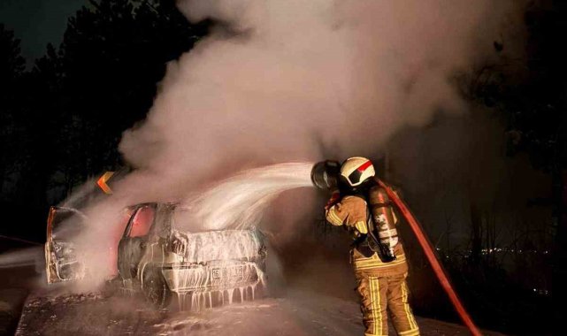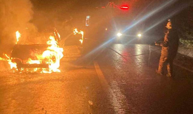 Bursa'da seyir halindeki otomobil alev alev yandı