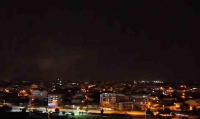 Bursa'nın Karacabey ilçesinde akşam saatlerinde art arda çakan şimşekler geceyi adeta gündüze çevirdi.