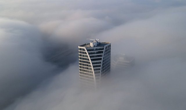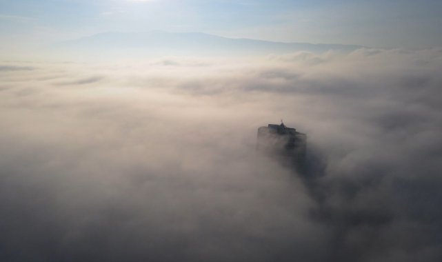 Bursa sabah saatlerinde yoğun sis etkili oldu. Kentin büyük bölümü sis altında adeta görünmez hale gelirken, Mudanya yolundaki yüksek binalar sis bulutlarını delerek göğe yükselen görüntüleriyle dikkat çekti.