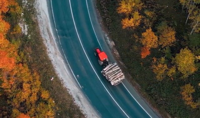 Bursa'nın İnegöl ilçesi ile Kütahya'nın Domaniç ilçesini birbirine bağlayan kıvrımlı orman yolu, sonbaharın gelişiyle birlikte adeta renk cümbüşüne dönüştü. Bu doğal güzellik drone ile havadan görüntülendi.