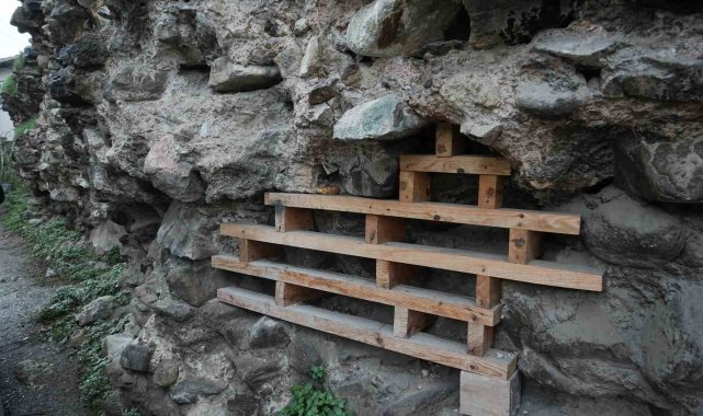 Surlardaki tarihi ayıp havadan dron ile görüntülendi.