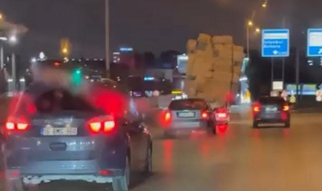 Özellikle yağışlı hava şartlarının etkili olduğu sırada kaydedilen görüntülerde, saman balyalarının herhangi bir ani fren, viraj ya da rüzgar durumunda yola savrulabilecek şekilde taşındığı görüldü.