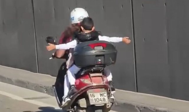 Olay, Yıldırım ilçesi Erikli mevki Ankara Yolu Caddesi üzerinde meydana geldi. Edinilen bilgiye göre, trafiğe çıkan adam, arkasına herhangi bir ekipman bulundurmadan aldığı iki çocukla trafiğe çıktı. Sürücü seyir halindeyken, arkasındaki çocuklar ise bulunduğu durumu oyuna çevirip ellerini açarak yolculuk etti. Tehlikeli yolculuk kilometrelerce sürerken, o anlar trafikteki başka sürücülerin kamerasına yansıdı.