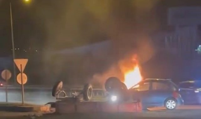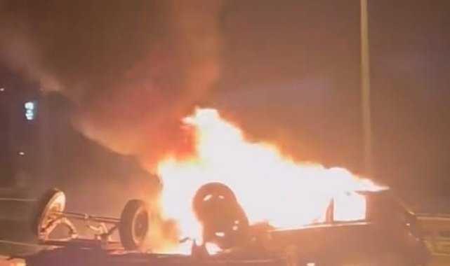 Kaza ve yangın sonucu otomobil kullanılamaz hale geldi.