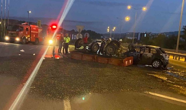Bursa'da traktöre çarpıp yanan otomobildeki anne-kız yaralandı