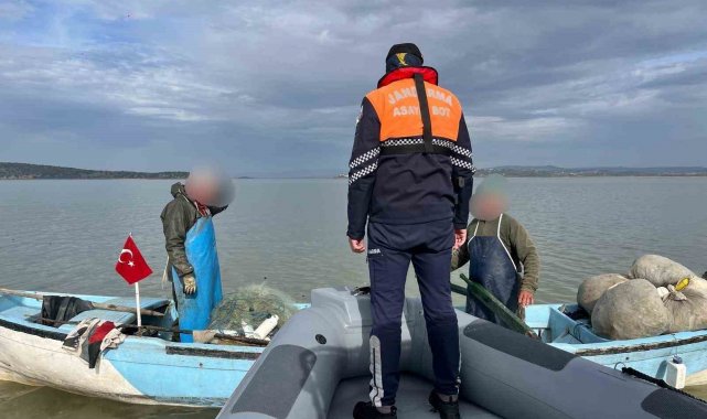 Bursa İl Jandarma Komutanlığı'na bağlı Nilüfer Jandarma Asayiş Bot Komutanlığı, Uluabat Gölü'nde usulsüz su ürünleri ve kara avcılığı yapan 30 şahsa 427 bin 365 lira idari para cezası kesti. Ayrıca 2.860 metre ağ, 870 kilogram canlı ve cansız balık, 2 adet av tüfeği, 46 adet canlı ve cansız av hayvanına el konuldu.