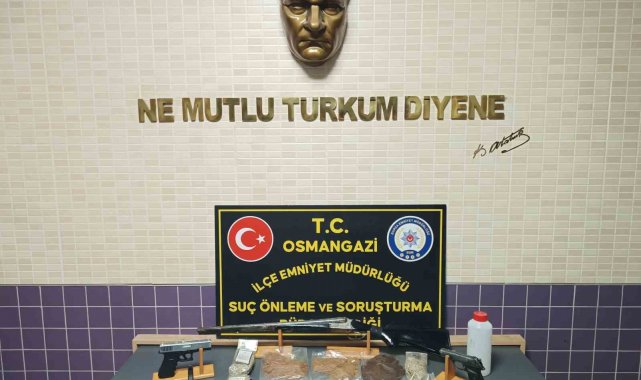 Osmangazi İlçe Emniyet Müdürlüğü Osmangazi Suç Önleme ve Soruşturma Büro Amirliği ekipleri, bir süredir peşinde olduğu uyuşturucu tacirlerine yönelik operasyon düzenledi. Yapılan operasyonda 6 şüpheli gözaltına alınırken, şahısları evlerinde yapılan aramada 1 adet hassas terazi, 1 adet çifte tüfek, 2 adet tabanca, 16 bin lira nakit para, 8 adet cep telefonu ve 512 gram uyuşturucu madde ele geçirdi. Şüphelilerin emniyetteki işlemlerinin sürdüğü öğrenildi.