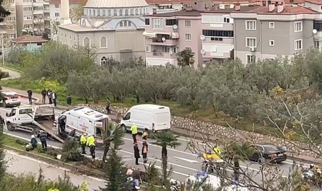 Kaza 18.00 sıralarında Güzelyalı kavşağı yakınları Mudanya Yolu üzerinde meyana geldi. Edinilen bilgiye göre, rahatsızlanan bir vatandaşı hastaneye yetiştirmek üzere yola çıkan ambulans, yağışın etkisiyle kontrolden çıkıp yan yattı. Kazayı fark eden çevredekiler 112 ekiplerine ulaşıp kazazedelerin yanına koştu. Sağlık ekiplerine ve rahatsızlanan vatandaşa ilk müdahaleyi çevredekiler yaparken, olay yerine intikal eden ekipler yaralıları hastaneye sevk etti. Polis ekiplerince trafik bir süre kontrollü olarak verilirken, kazayla ilgili soruşturma başlatıldı.