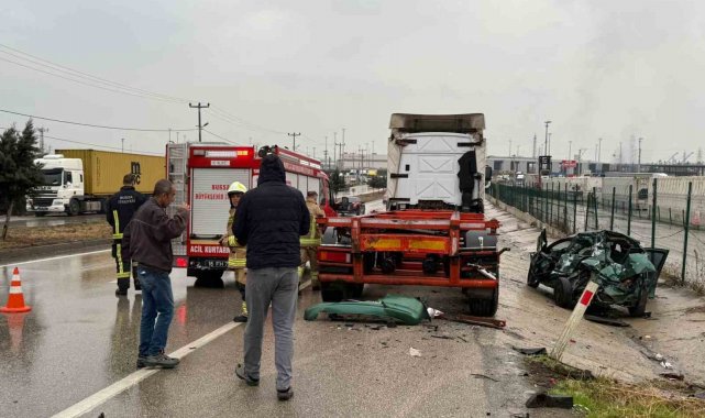 Kaza, sabah saatlerinde Serbest Bölge Liman ve Fabrikalar yolunda meydana geldi. Edinilen bilgiye göre, Serdal B. (30) idaresindeki 16 AET 014 plakalı otomobil, yağmur sebebiyle direksiyon hakimiyetini kaybetti. Kontrolden çıkan otomobil, yol kenarında park halinde bulunan tır ile elektrik trafosuna çarptı.